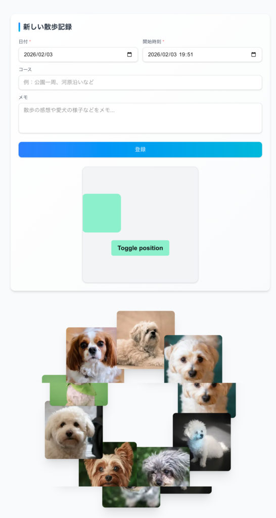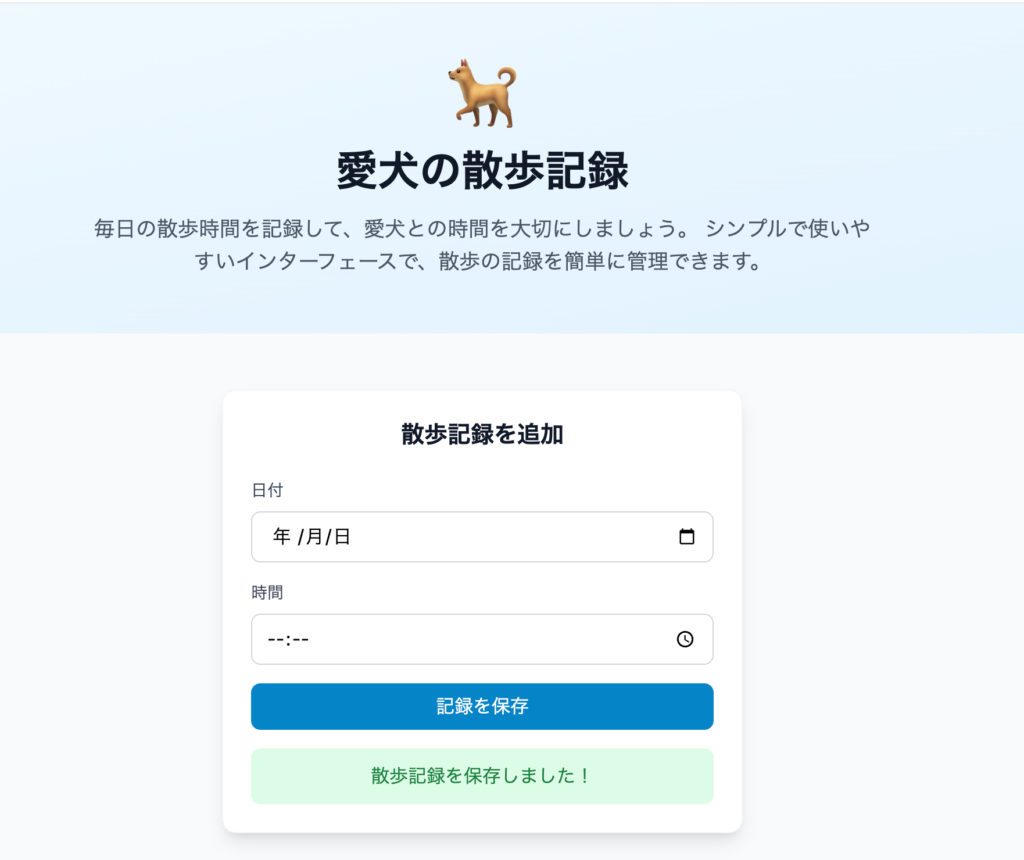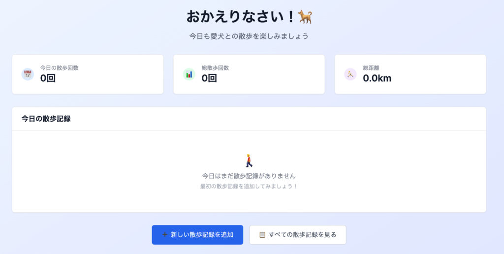 Next.jsとSupabaseで、ログイン認証と散歩記録の保存ができるサイトを作成しました。